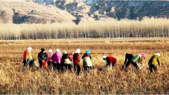 村民采收藥材射干種子的場景