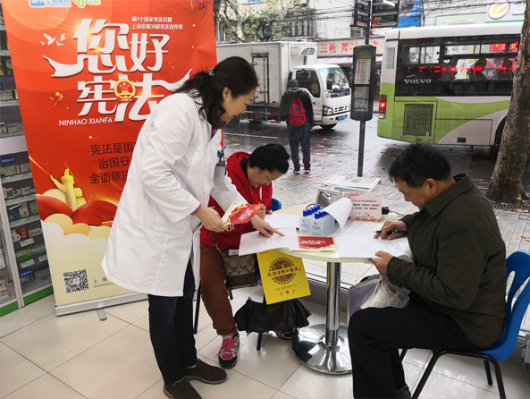 12月3~9日上海市第30屆“憲法宣傳周”期間,作為上海醫(yī)藥集團(tuán)憲法宣傳周活動參與單位,上海華氏大藥房在其延吉分店、雷允上平順分店兩家藥房開展憲法知識有獎問答活動,并通過零售窗口向廣大市民進(jìn)行憲法知識宣傳。