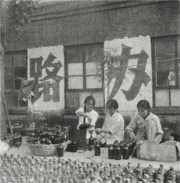 20世紀(jì)70年代初期神威藥業(yè)前身南王中學(xué)“五·七”化工廠灌裝紫藥水生產(chǎn)現(xiàn)場