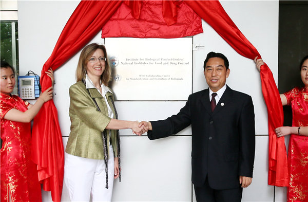 2013年5月25日,中國(guó)食品藥品檢定研究院召開(kāi)世界衛(wèi)生組織生物制品標(biāo)準(zhǔn)化和評(píng)價(jià)合作中心(WHO CC)工作報(bào)告會(huì)暨掛牌儀式 中檢院提供
