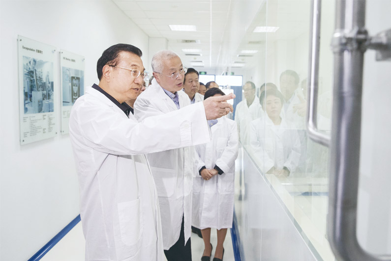 圖①4月10日,李克強(qiáng)總理(左一)在上海羅氏制藥有限公司了解企業(yè)研發(fā)生產(chǎn)情況。李克強(qiáng)指出,會(huì)繼續(xù)對(duì)抗癌藥品降低關(guān)稅,直至降至零關(guān)稅。