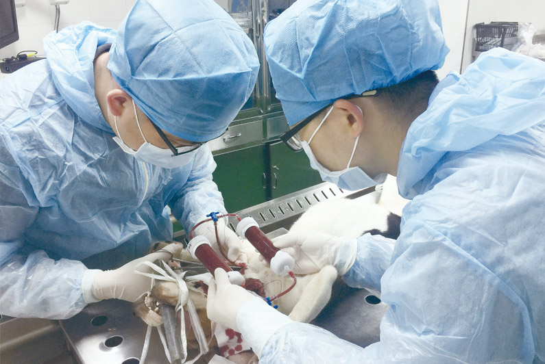 圖④深圳市醫(yī)療器械檢測(cè)中心技術(shù)人員進(jìn)行器械產(chǎn)品的動(dòng)物安全性評(píng)價(jià)實(shí)驗(yàn)。