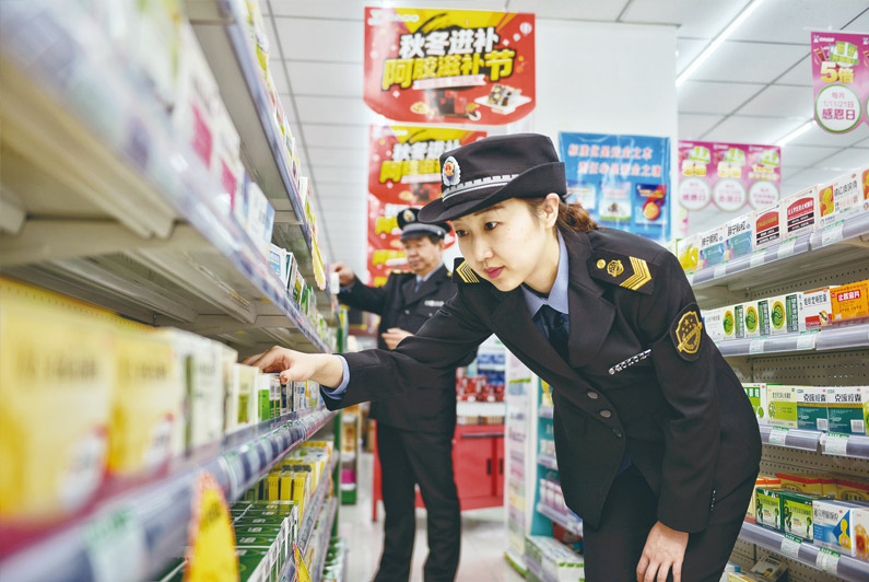 圖⑤寧夏回族自治區(qū)藥品監(jiān)管局工作人員在一家藥店進(jìn)行現(xiàn)場(chǎng)檢查。