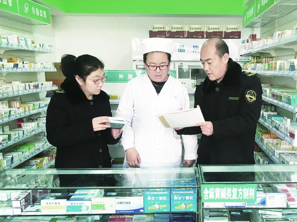 圖為執(zhí)法人員在一家藥店檢查。李大勇 攝