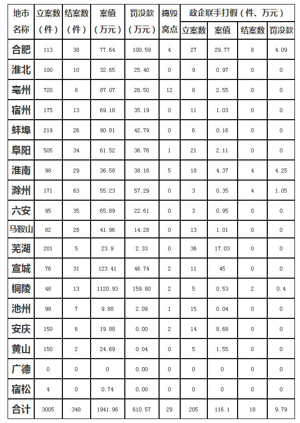 安徽2019年元旦春節(jié)期間打假專項(xiàng)行動(dòng)第一次“統(tǒng)一攻堅(jiān)行動(dòng)周”期間共立案3005件