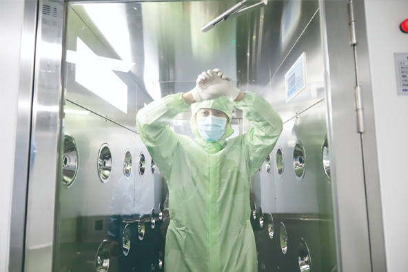 在北京全式金生物技術(shù)有限公司,監(jiān)管人員按照潔凈控制標準,“全副武裝”接受風(fēng)淋。