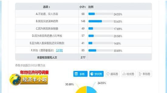《經(jīng)濟(jì)半小時》記者與“與癌共舞”網(wǎng)絡(luò)論壇合作的一份調(diào)查問卷顯示,截止到2018年12月16日,在504份問卷統(tǒng)計中,54.9%的患者存在買不到醫(yī)保抗癌藥的問題,其中53.4%的患者面臨的主要問題是,醫(yī)院明確表示不進(jìn)醫(yī)??拱┧?。