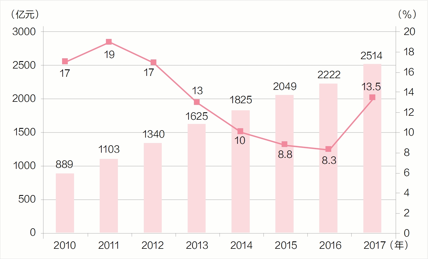 2010~2017年化妝品市場(chǎng)規(guī)模