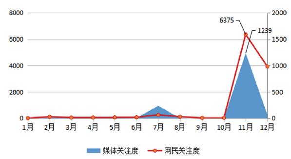從輿情走勢(shì)來看,如圖1所示,整體呈現(xiàn)“山峰式”特征,網(wǎng)民關(guān)注度遠(yuǎn)高于媒體關(guān)注度。