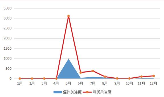 從整體輿情走勢(shì)看,如圖1所示,呈現(xiàn)“山峰式”特征,網(wǎng)民關(guān)注度遠(yuǎn)高于媒體關(guān)注度。
