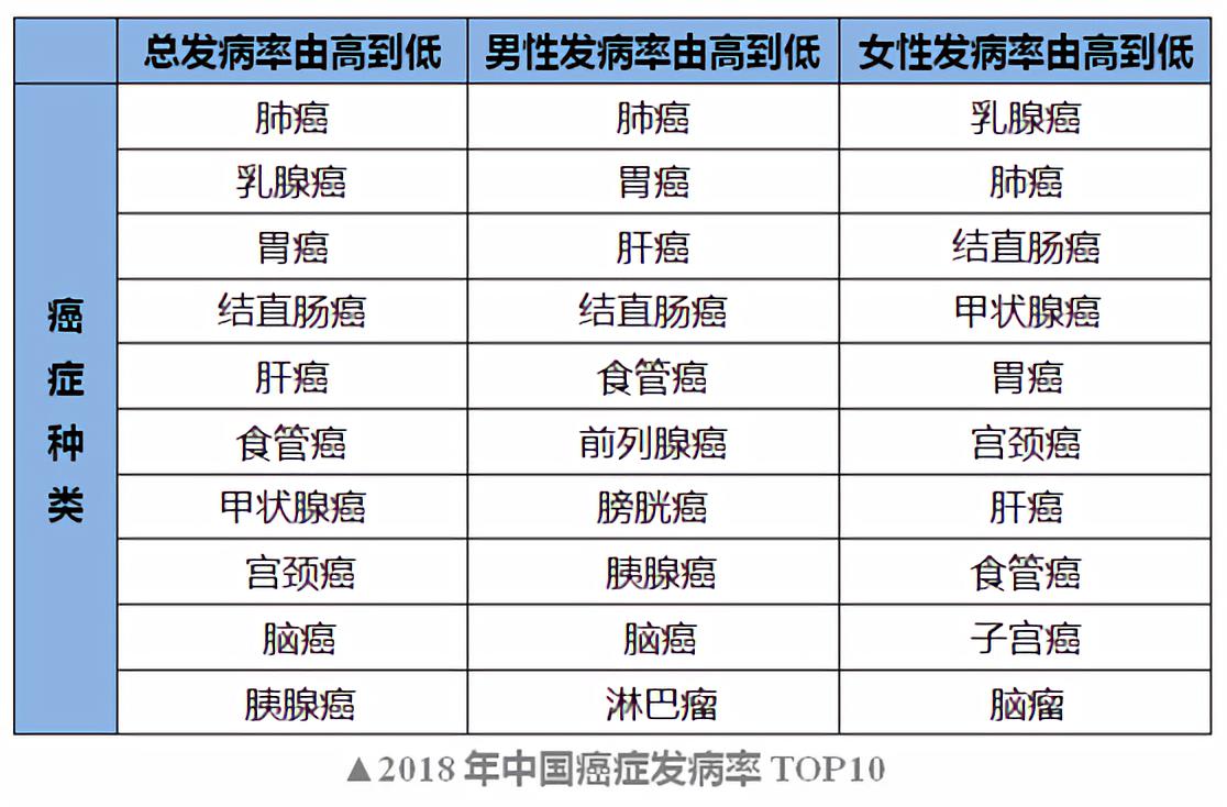 而在中國,肺癌的發(fā)病率也是最高的。此外,男性胃癌、肝癌、結(jié)直腸癌、食管癌;女性乳腺癌、結(jié)直腸癌、甲狀腺癌、胃癌等也較為高發(fā)。