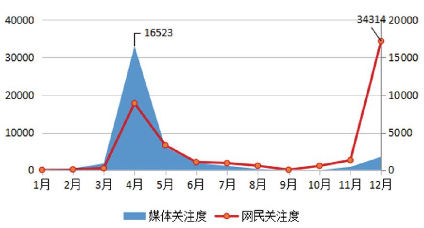 從整體關(guān)注度看,如圖1所示,輿情呈現(xiàn)“波浪式”發(fā)展特征??傮w來看,事件在社交媒體的關(guān)注度高于新聞媒體。