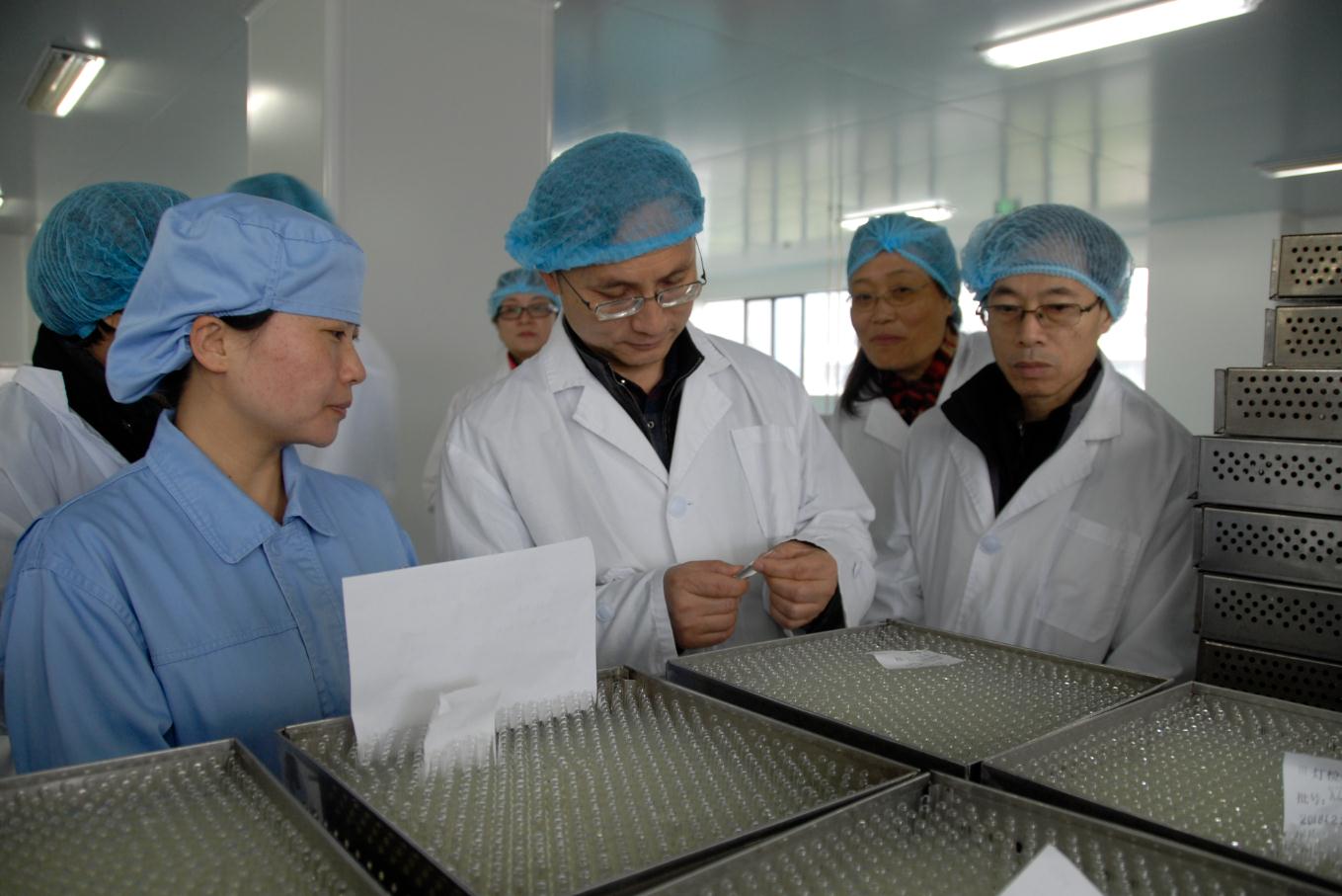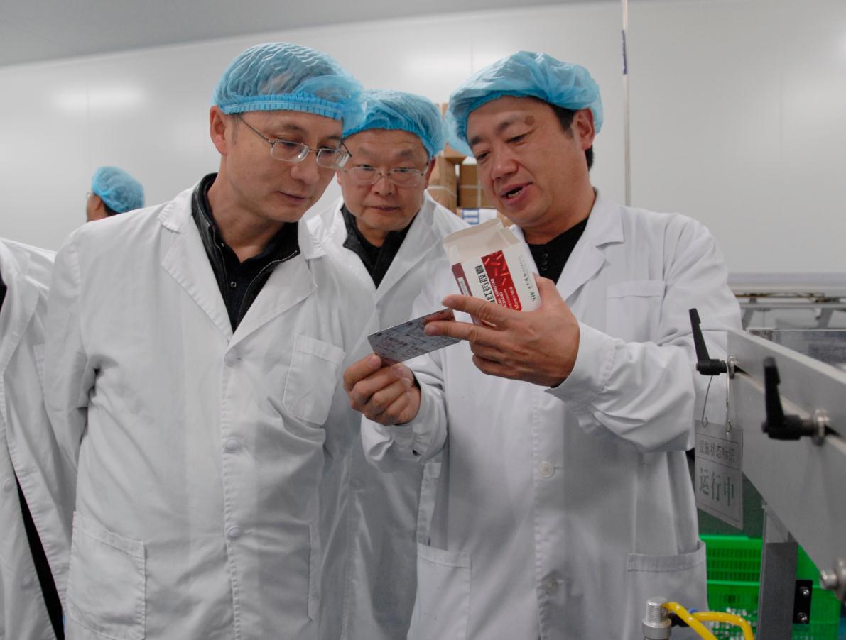 圖為劉本軍(中)在無(wú)菌制劑車間調(diào)研注射液生產(chǎn)線。