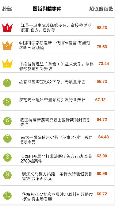 醫(yī)藥輿情排行榜|江蘇一衛(wèi)生院涉嫌給多名兒童接種過期疫苗