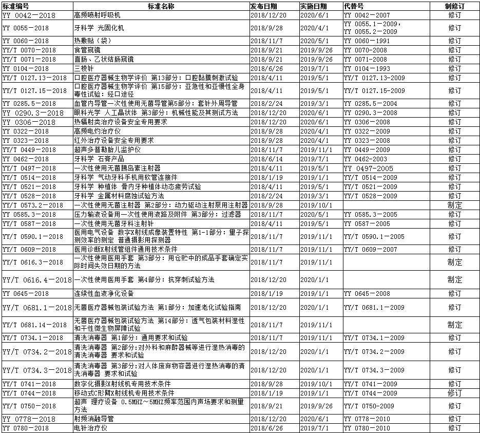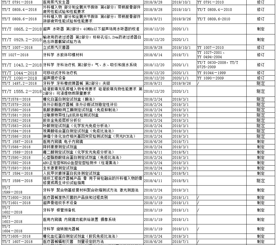 附:2018年發(fā)布醫(yī)療器械行業(yè)標準104項