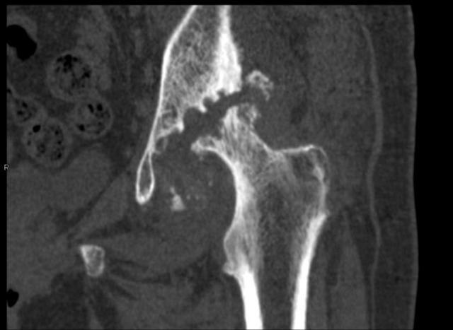 骨頭的空隙處是已經(jīng)消失缺損的髖臼。