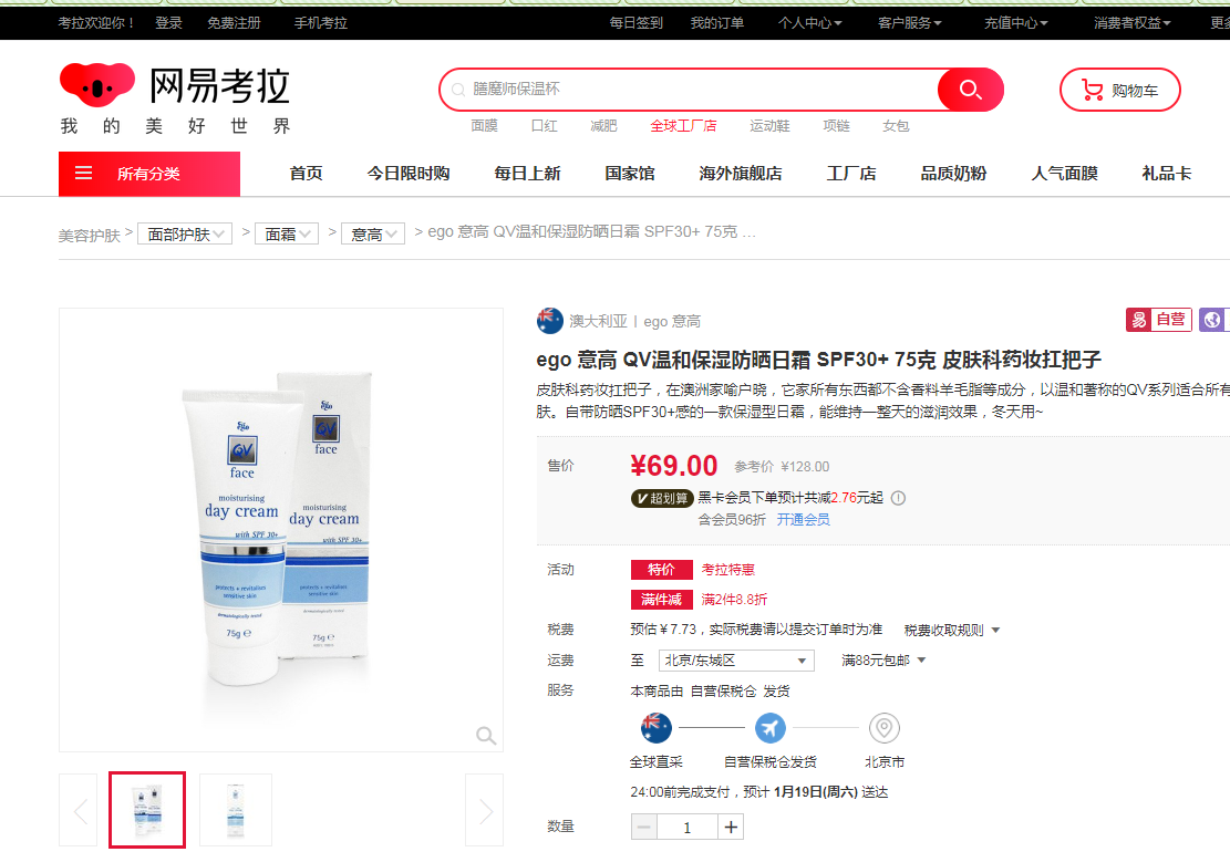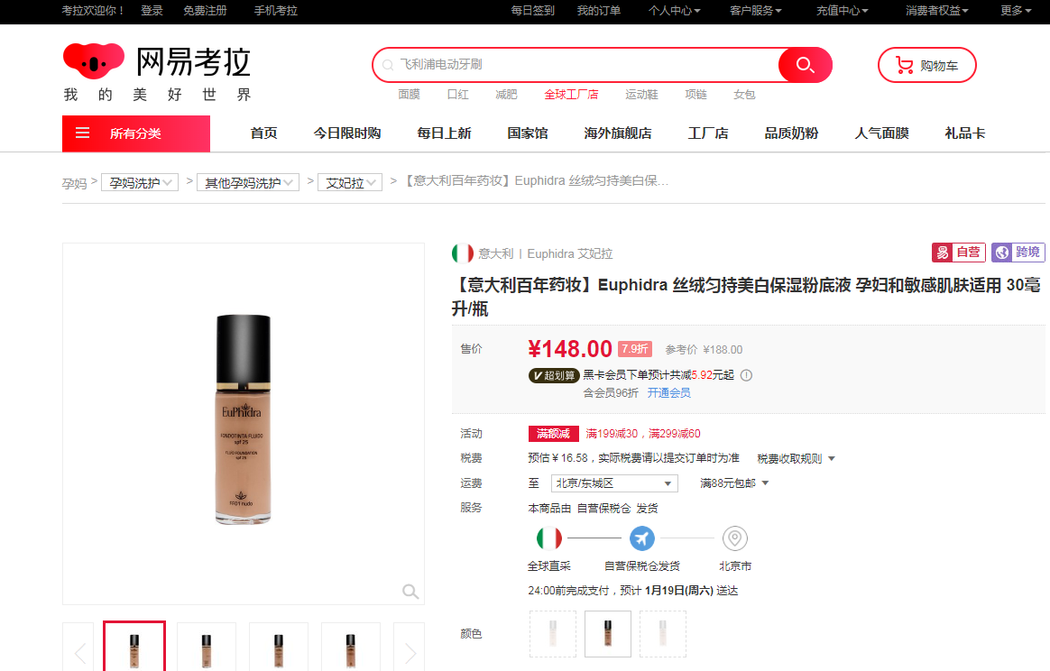 1月17日上午,記者在網(wǎng)易考拉上搜索,仍有不少產(chǎn)品以“藥妝”標(biāo)識(shí)。