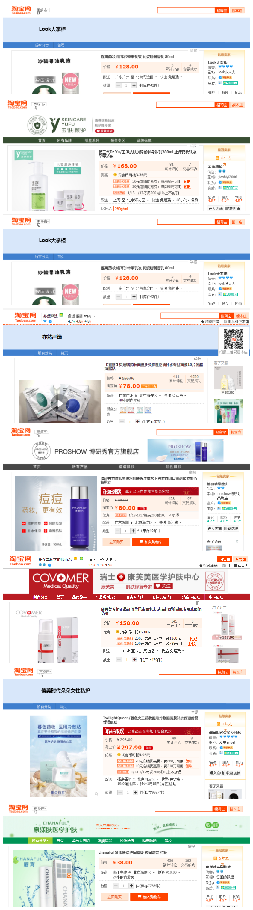 1月17日上午,記者在淘寶網(wǎng)再次搜索“藥妝”,結(jié)果顯示沒有找到相關(guān)產(chǎn)品。據(jù)悉,阿里巴巴平臺(tái)已經(jīng)啟動(dòng)化妝品宣傳“藥妝”“醫(yī)學(xué)護(hù)膚品”“EGF”等專項(xiàng)管控。目前,部分商家已經(jīng)收到處罰預(yù)警。之后,記者在百度上搜索“藥妝”,還是有鏈接標(biāo)注“藥妝”,點(diǎn)擊進(jìn)去為淘寶店鋪,其中包含天貓超市。之后,記者在網(wǎng)易考拉上搜索,仍有不少產(chǎn)品以“藥妝”標(biāo)識(shí)。