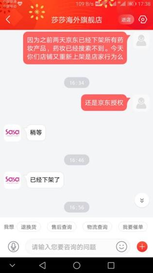 1月20日16時(shí),記者在京東平臺(tái)搜索"藥妝"關(guān)鍵詞,確實(shí)存在一些"藥妝"產(chǎn)品,涉及莎莎海外旗艦店、CREVIO海外專營店、惠萊美妝海外專營店三家店鋪。隨后,記者聯(lián)系了莎莎海外旗艦店的客服,其店客服人員先是稱,藥妝產(chǎn)品可以售賣。在記者追問是京東授權(quán)還是商家自主行為時(shí),客服在十五分鐘后回復(fù)"已經(jīng)下架了"。隨后記者在京東平臺(tái)再搜索"藥妝"關(guān)鍵詞,已經(jīng)無莎莎海外旗艦店的產(chǎn)品。