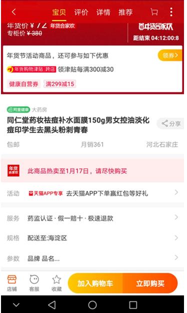 不過在天貓、淘寶網(wǎng)上,仍有大量"藥妝""EGF"產(chǎn)品正常銷售。當(dāng)日20時(shí),記者在阿里健康官方自營店阿里健康大藥房中看到了"同仁堂藥妝祛痘補(bǔ)水面膜"的標(biāo)題描述。20點(diǎn)07分致電天貓官方,其負(fù)責(zé)人稱24小時(shí)內(nèi)由專人給予回應(yīng),并表示會(huì)催促其回復(fù)。