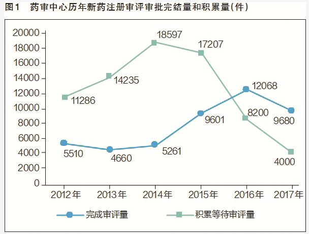 近年來,我國(guó)藥品審評(píng)審批速度不斷提高,新藥審批等待時(shí)間大幅縮減。從藥品審評(píng)中心(CDE)公布的歷年藥品審評(píng)報(bào)告可以看出,藥品注冊(cè)申請(qǐng)審評(píng)審批速度明顯加快,從2015年之前的年均5000件審評(píng)完結(jié)量大幅提升到2017年的1萬(wàn)件左右;積壓等待審評(píng)量從2015年高峰期的2.2萬(wàn)件下降到2017年的約4000件(見圖1),目前注冊(cè)積壓已逐步消除,90%的藥品注冊(cè)申請(qǐng)實(shí)現(xiàn)了法定時(shí)限審評(píng)。