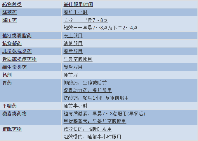 11類常用藥物的最佳服用時間