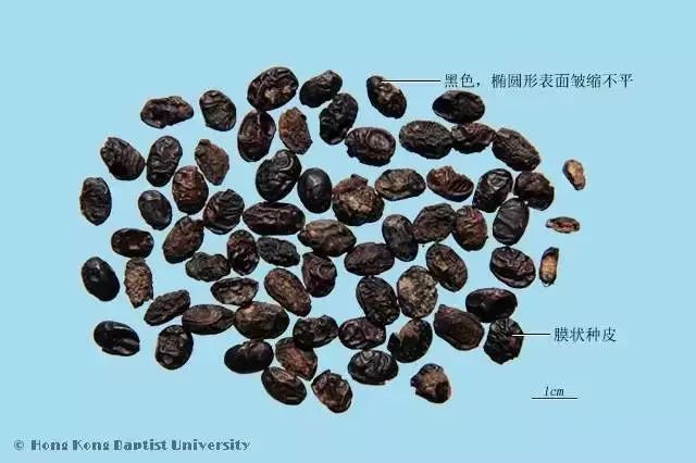 性狀鑒別:本品呈橢圓形,略扁,長0.6~1cm,直徑0.5~0.7cm。表面黑色,皺縮不平。質柔軟,斷面棕黑色。氣香,味微甘。