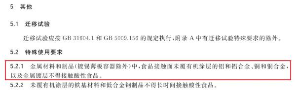 我國國家標(biāo)準(zhǔn)《食品接觸用金屬材料及制品》相關(guān)規(guī)定