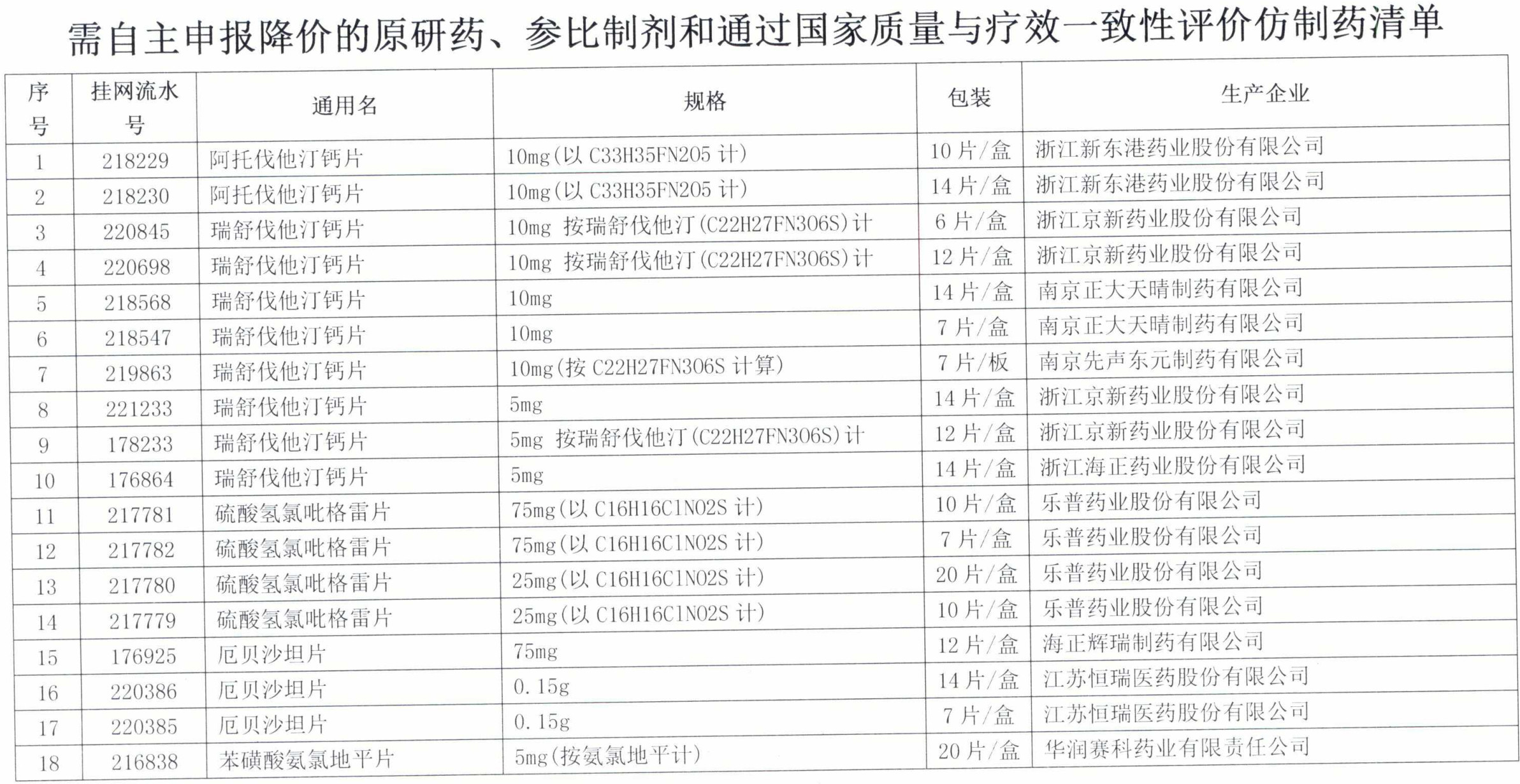 其中原研藥、參比制劑、通過國家質(zhì)量與療效一致性評價(jià)的仿制藥(詳見附件2),由藥品生產(chǎn)企業(yè)在規(guī)定時(shí)限內(nèi),按照4+7城市聯(lián)合采購辦公室的梯度降價(jià)規(guī)則,以不高于已在上海完成梯度降價(jià)藥品的價(jià)格自主申報(bào)降價(jià)(規(guī)格、包裝有差比關(guān)系的根據(jù)差比價(jià)規(guī)則計(jì)算)。