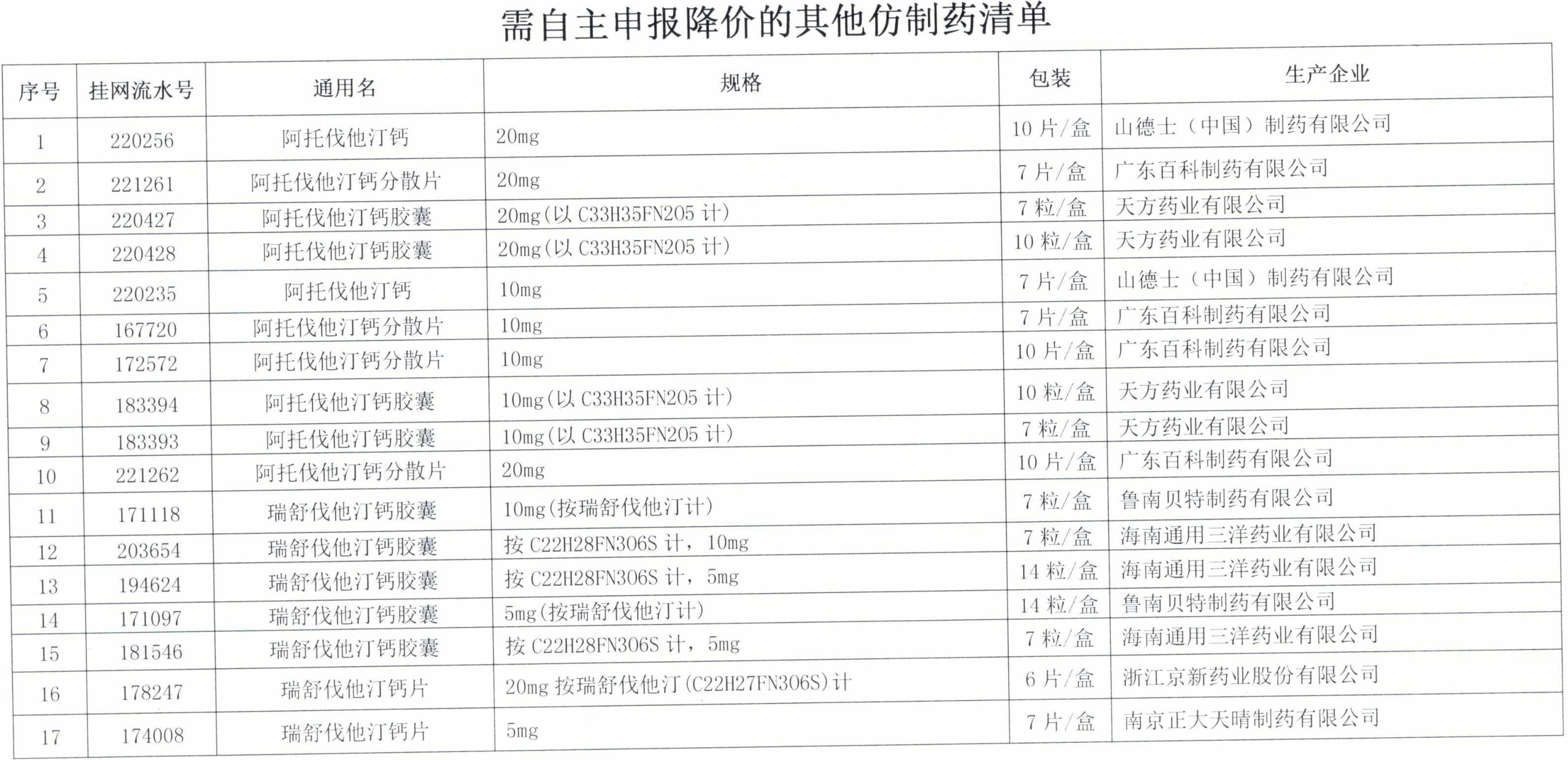 3)需要自主申報(bào)降價(jià)的其他仿制藥