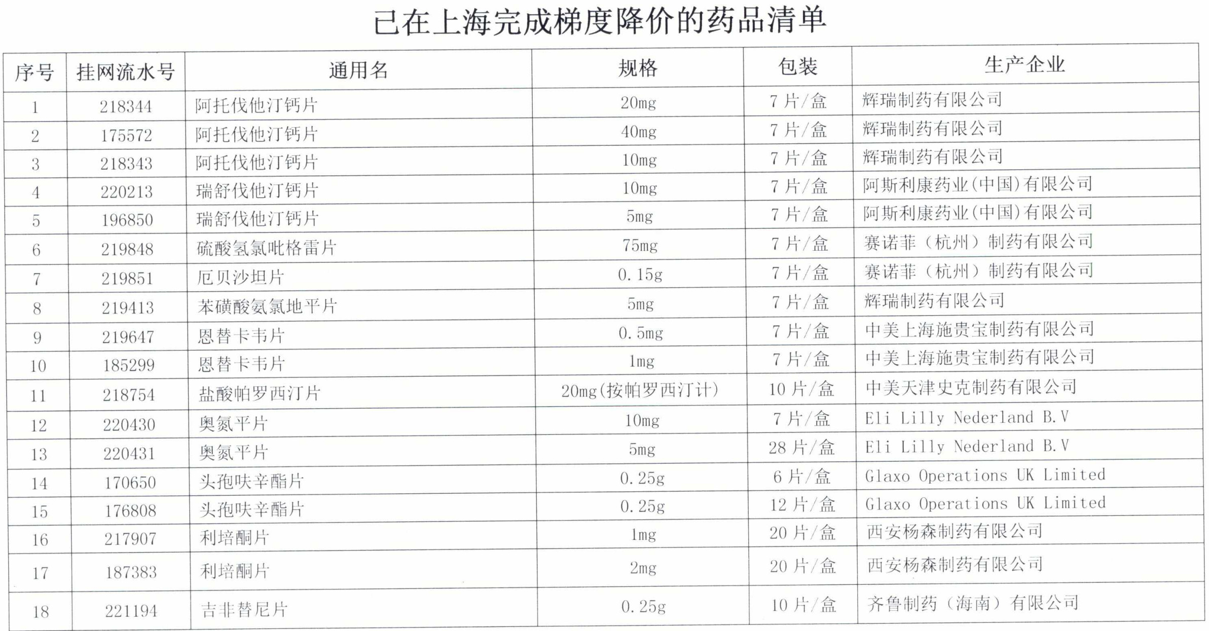 1)已經(jīng)在上海完成梯度降價(jià)的藥品;