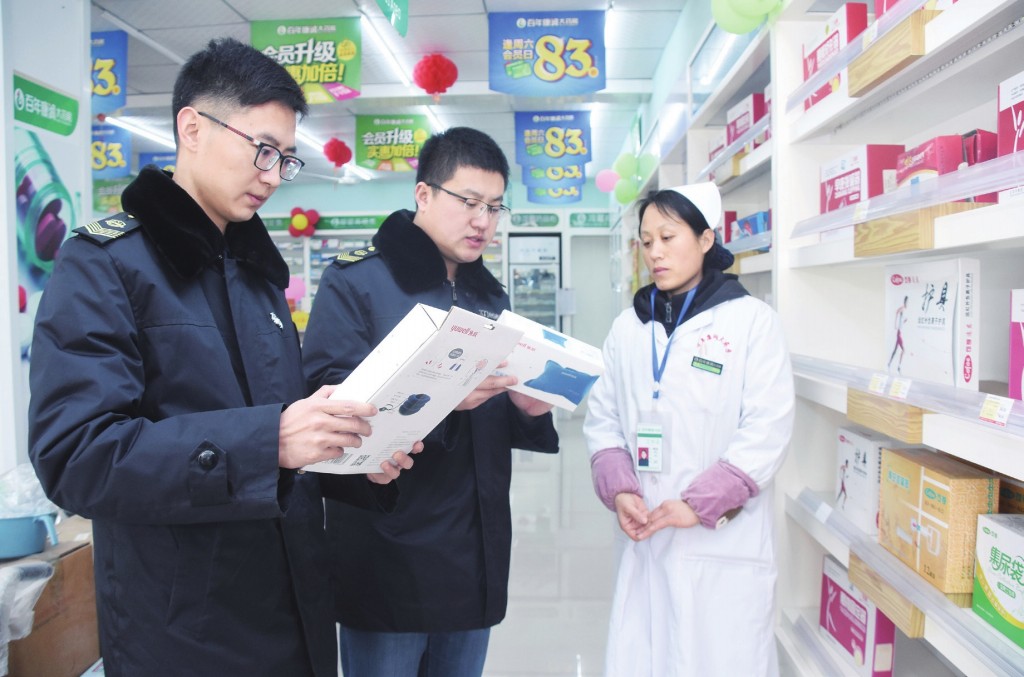 近日,山東省高唐縣市場監(jiān)管局開展醫(yī)療器械安全整治工作,重點(diǎn)檢查轄區(qū)內(nèi)車站、批發(fā)市場附近的醫(yī)療器械專營店,著力打擊從非法渠道購進(jìn)醫(yī)療器械,銷售過期、失效醫(yī)療器械等違法違規(guī)經(jīng)營行為。 圖為該局執(zhí)法人員在一家門店進(jìn)行檢查。李慧 攝