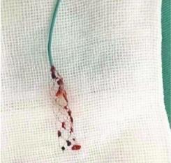 醫(yī)生通過血管內(nèi)支架取栓介入手術(shù)取出大量血栓