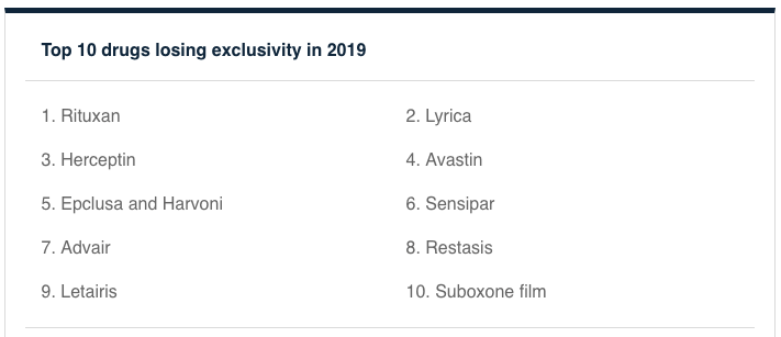 以下是2019年可能面臨專利挑戰(zhàn)風(fēng)險的十大藥物的概況: