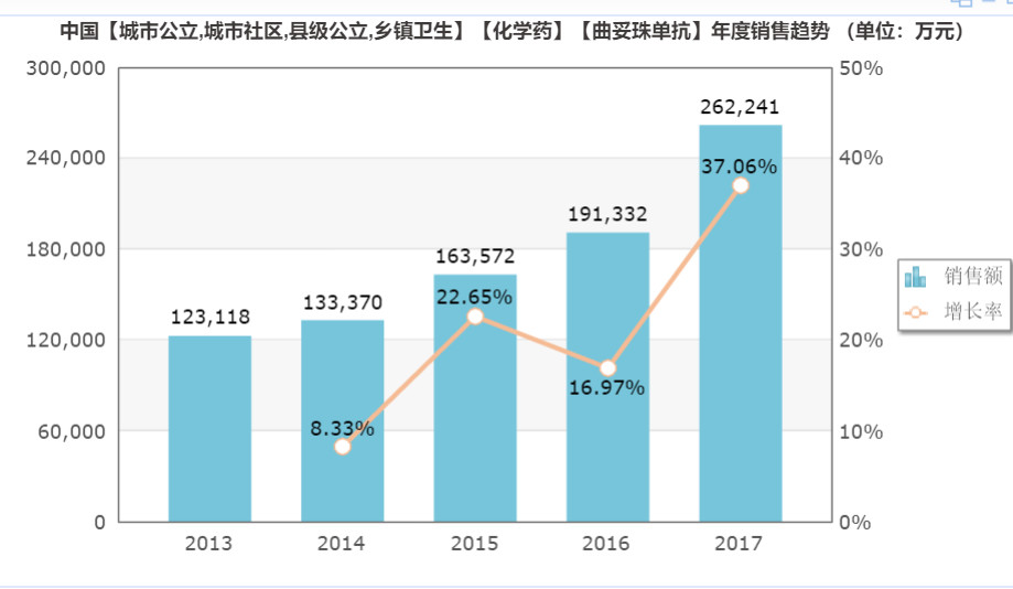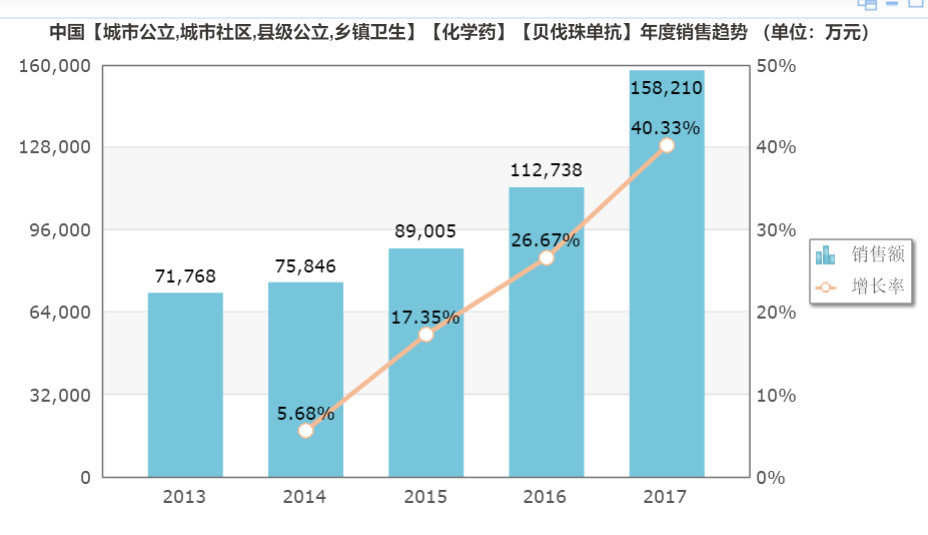 米內(nèi)網(wǎng)數(shù)據(jù)顯示,2018年赫賽汀在中國醫(yī)院市場的銷售額高達26.22億元,市場增速高達37.06%。