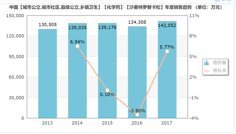 米內(nèi)網(wǎng)數(shù)據(jù)顯示,2018年舒利迭在中國醫(yī)院市場的銷售額為14.2億元,近幾年市場增長比較平緩,基本處于停滯狀態(tài)。接下來,隨著仿制藥逐漸獲批,舒利迭的銷量將會進一步受到影響。