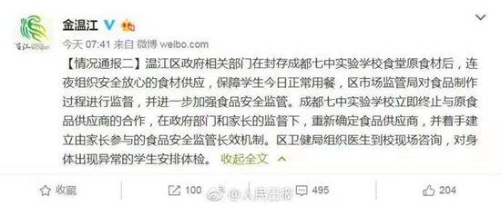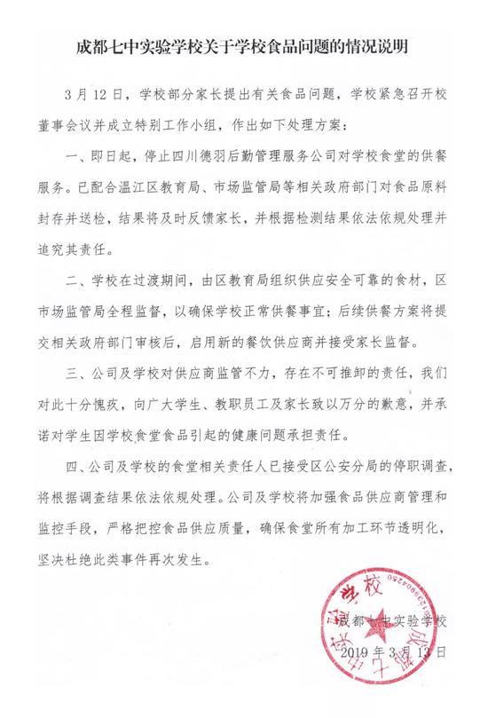 成都七中實(shí)驗(yàn)學(xué)校:公司及學(xué)校對(duì)供應(yīng)商監(jiān)管不力,十分愧疚