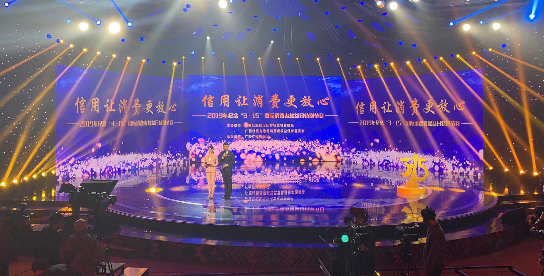 2019年“3·15”國際消費者權(quán)益保護日活動主題是“信用讓消費更放心”。為了展示活動主題,“3·15”特別節(jié)目圍繞農(nóng)村食品安全、老年“保健品”消費和網(wǎng)絡(luò)消費侵權(quán)等消費者日益關(guān)切的消費熱點,通過現(xiàn)場視頻的方式,曝光了全區(qū)市場監(jiān)管部門近期查處的幾起消費侵權(quán)典型案例,并邀請消費維權(quán)專家現(xiàn)場發(fā)布消費警示,提醒廣大消費者“擦亮”眼睛,提防消費陷阱。節(jié)目現(xiàn)場,來自基層消費維權(quán)一線的謝華、譚英、陳敏、鐘劍華、黎冠彬、夏文秀6位維權(quán)風(fēng)采人物分享了多年從事消費維權(quán)的感悟,并接受消費者代表的致敬和鮮花;來自全區(qū)各行各業(yè)的30家企業(yè)負責(zé)人在通過“3·15”特別節(jié)目向社會莊嚴承諾:秉持誠信理念,自覺守法經(jīng)營,強化企業(yè)自律,履行社會責(zé)任,杜絕假冒偽劣,主動接受監(jiān)督,爭創(chuàng)行業(yè)典范,促進和諧消費。