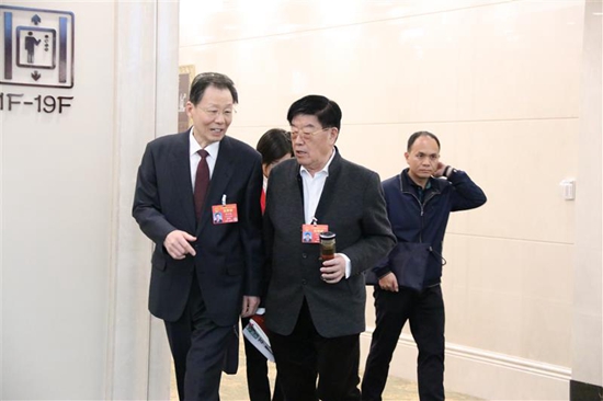 全國人大代表徐鏡人與全國人大常委會委員李學勇在會前交流