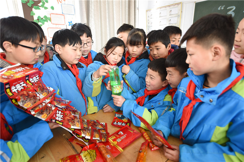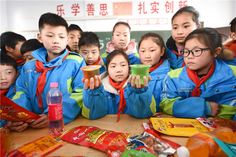 圖為東??h黃川鎮(zhèn)中心小學(xué)學(xué)生正在識(shí)別“三無(wú)”食品。通訊員 張正友 攝