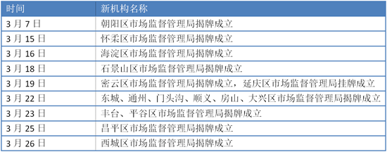 北京市16家區(qū)市場監(jiān)督管理局成立時間表。(中國食品藥品網(wǎng)記者王曉冬 整理)