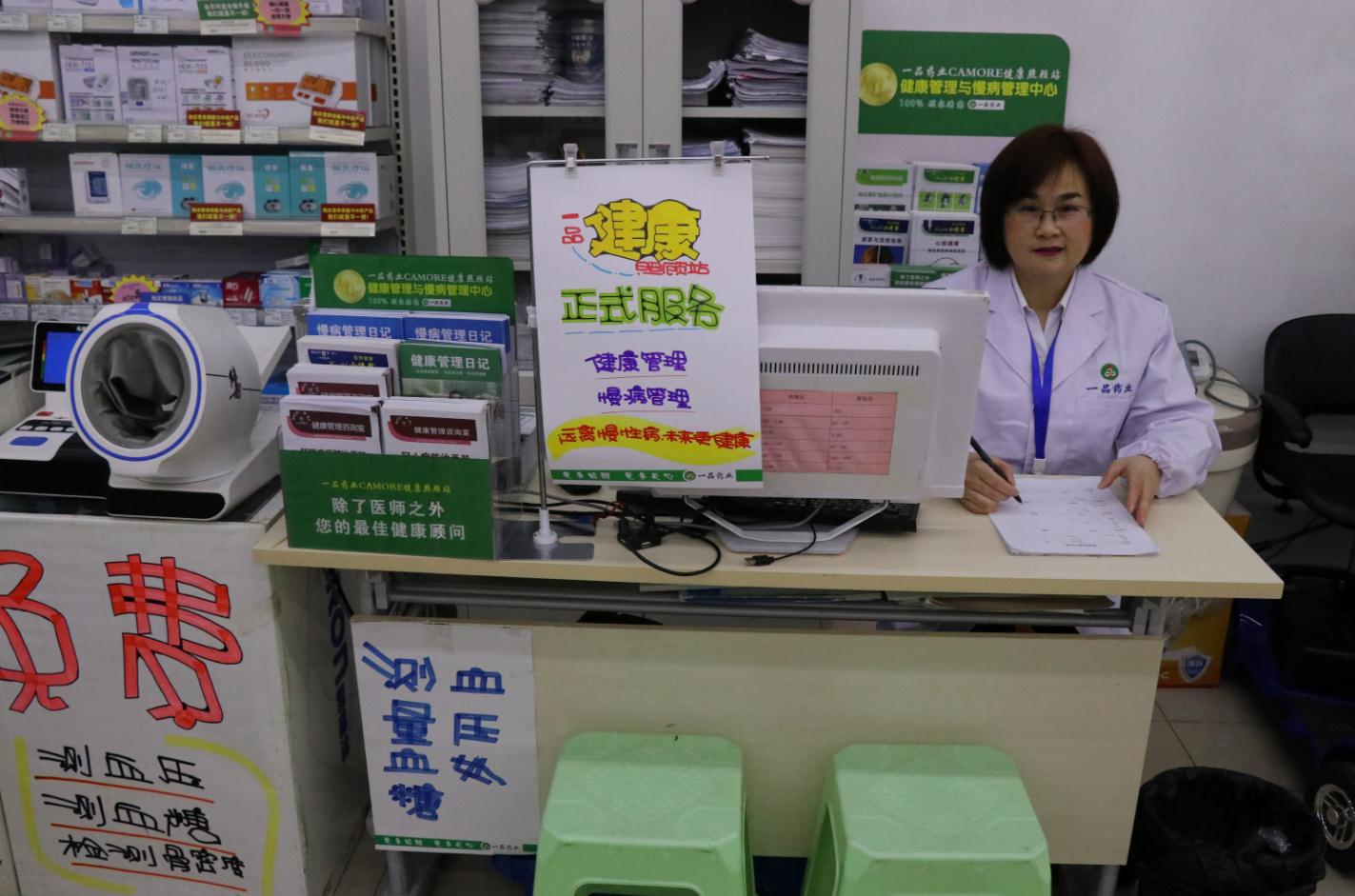 “現(xiàn)在的‘健康照顧站’是門店最熱鬧的地方,每天來測量、咨詢的人很多。顧客對我們的服務(wù)非常滿意,甚至送來錦旗。既方便了他人,也實現(xiàn)了自我價值,挺好的。”陳桂芳表示。