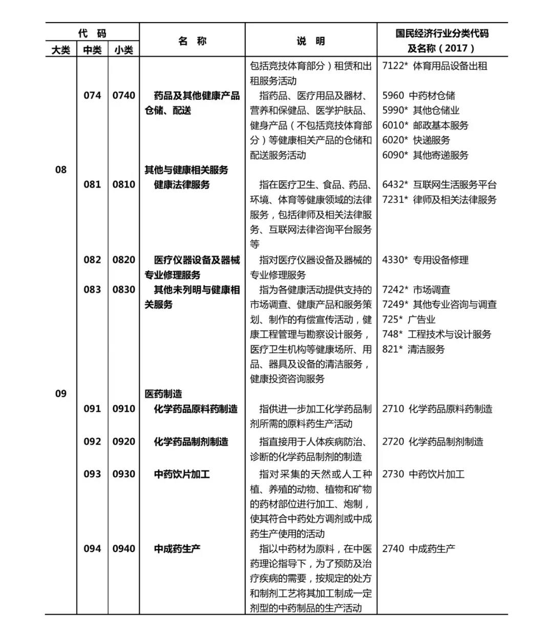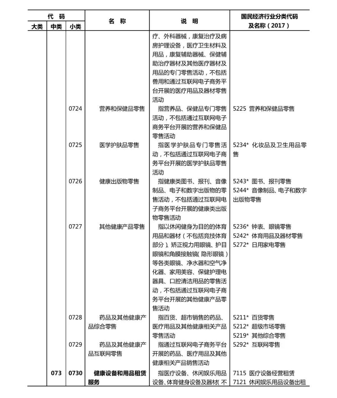 ?。ǘ┮浴秶窠洕袠I(yè)分類》為基礎。本分類以《國民經濟行業(yè)分類》(GB/T 4754-2017)為基礎,是對《國民經濟行業(yè)分類》中符合健康產業(yè)特征相關活動的再分類。