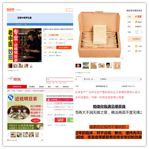 然而,有媒體調(diào)查發(fā)現(xiàn),在淘寶等電商平臺(tái),以“近視中醫(yī)”等關(guān)鍵詞進(jìn)行檢索,有多款“近視茶”的商家宣傳產(chǎn)品具有“恢復(fù)視力”“治愈近視”等功效,與《通知》的要求相違背。