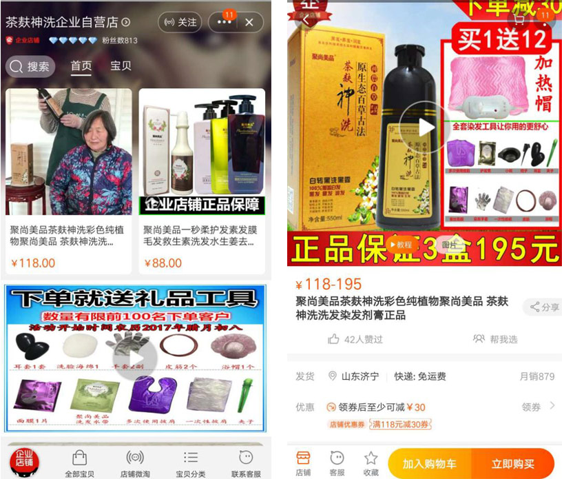 值得關注的是,染發(fā)、祛斑(美白)類化妝品屬于特殊用途化妝品,應經國家藥監(jiān)局批準、取得特殊用途化妝品批準文號后方可上市銷售,消費者在選購特殊用途化妝品時,要查看該產品是否標識特殊用途化妝品批準文號。而記者在京東網頁檢索“聚尚美品茶麩神洗”發(fā)現,弘攀個護專營店、科陽化妝品專營店等店鋪在銷售相關品名、具有染發(fā)功能的產品時,并未在產品參數和規(guī)格包裝的信息中標出產品批準文號。