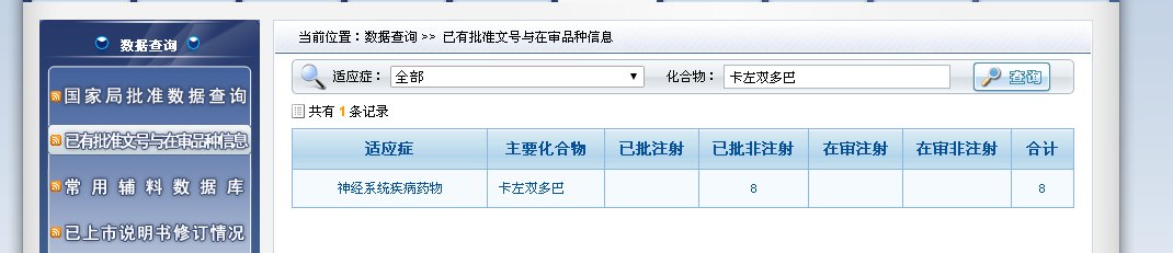 此外,記者查詢國家藥監(jiān)局藥品審評中心官網(wǎng)發(fā)現(xiàn),適應(yīng)證為神經(jīng)系統(tǒng)疾病藥物、主要化合物為卡左雙多巴的已批非注射劑有8個(gè),目前沒有在審的產(chǎn)品。