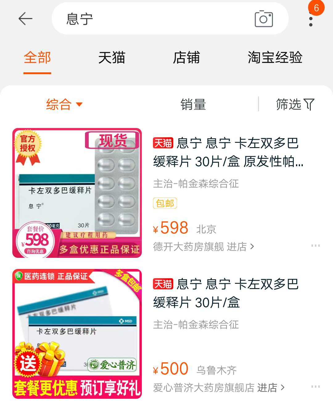 值得關(guān)注的還有藥價(jià)上漲的現(xiàn)象。4月22日,有患者家屬在百度貼吧發(fā)文,說“淘寶太貴了,我爸需要息寧?!庇浾咴谔詫毦W(wǎng)搜索發(fā)現(xiàn),僅兩家藥店在售此藥,但售價(jià)在500元以上,相比50~70元的正常價(jià)格漲了近10倍。4月29日,記者詢問時(shí),德開大藥房旗艦店的息寧價(jià)格為598一盒,店鋪客服表示有貨,頁面所示為最低價(jià)格。另一家愛心普濟(jì)大藥房旗艦店的藥價(jià)為500一盒,但客服表示沒有現(xiàn)貨,顧客需先提交預(yù)定,到貨后店鋪客服會留言通知,但“到貨時(shí)間不敢保證”。