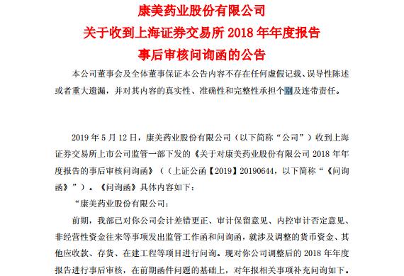 康美藥業(yè)收到問(wèn)詢(xún)函