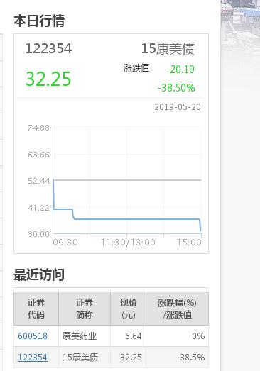 10時00分恢復(fù)交易后,“15康美債”下跌到36元。上交所再發(fā)公告,決定自2019年05月20日10時03分開始暫?!?5康美債”交易,自2019年05月20日14時57分起恢復(fù)交易。