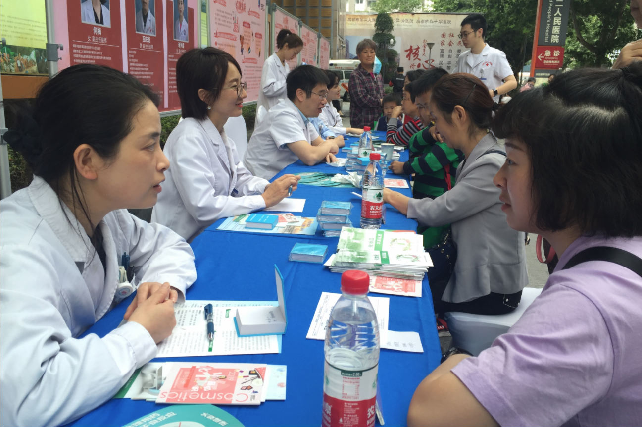 上午9點30分,成都市第二人民醫(yī)院門診大樓廣場的化妝品科普知識展板吸引了不少市民觀看,化妝品不良反應(yīng)法律法規(guī)及科普知識宣傳臺被市民們圍得水泄不通,大家紛紛就如何選擇適合自己的化妝品以及化妝品成分、功效請專家解惑答疑。